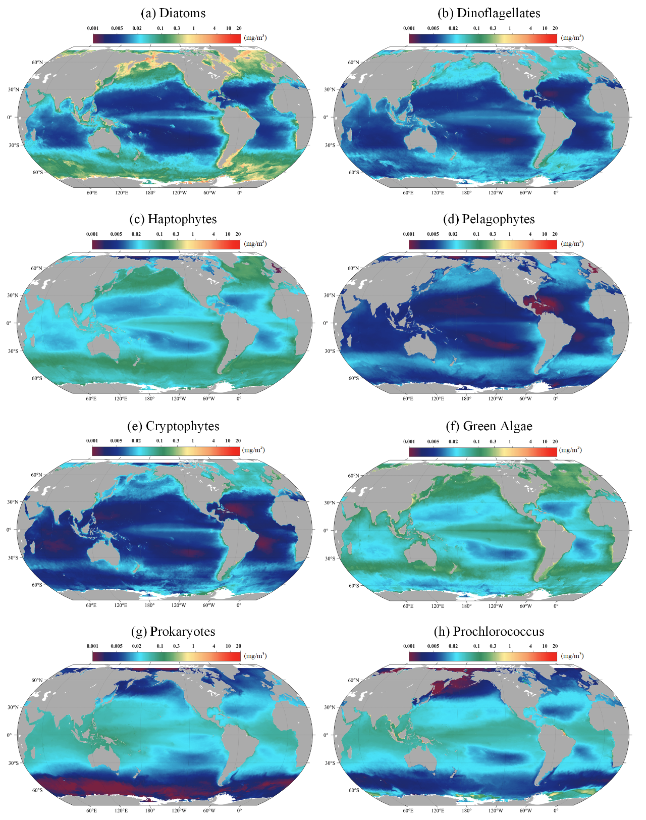 图3 8种浮游植物类群全球反演示意图