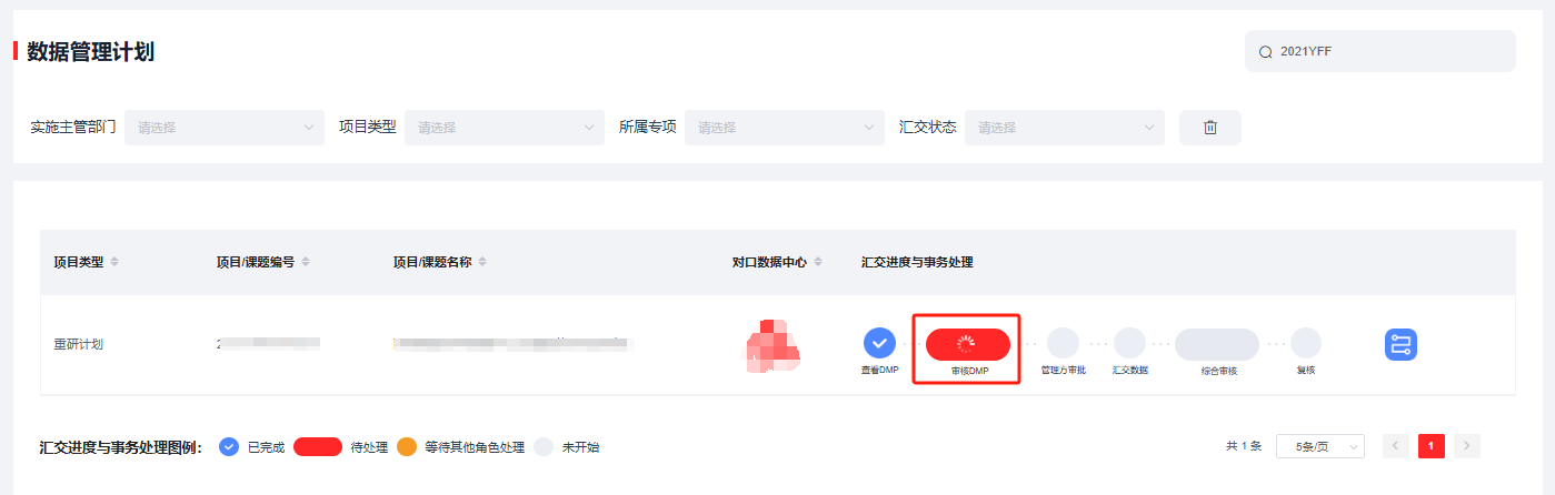 2. 对口科学数据中心审核员登录CASDMP平台,点击【审核DMP】,进入科学数据管理计划审核页面。