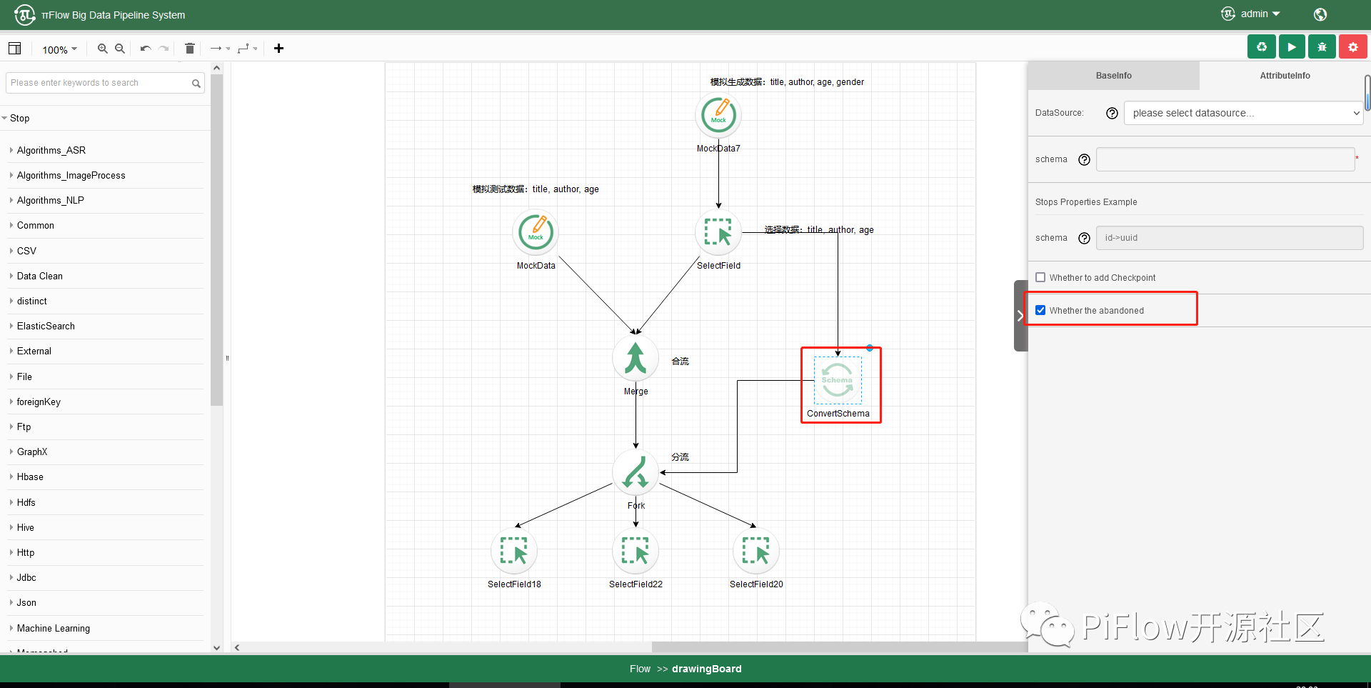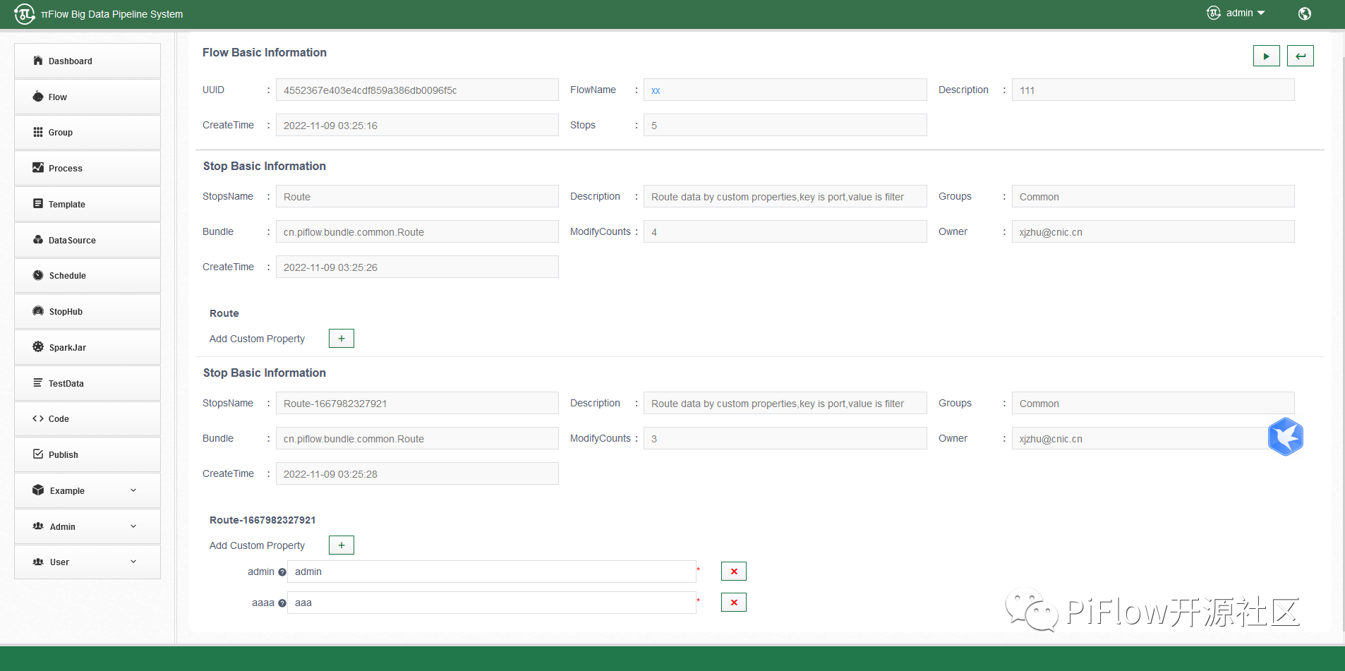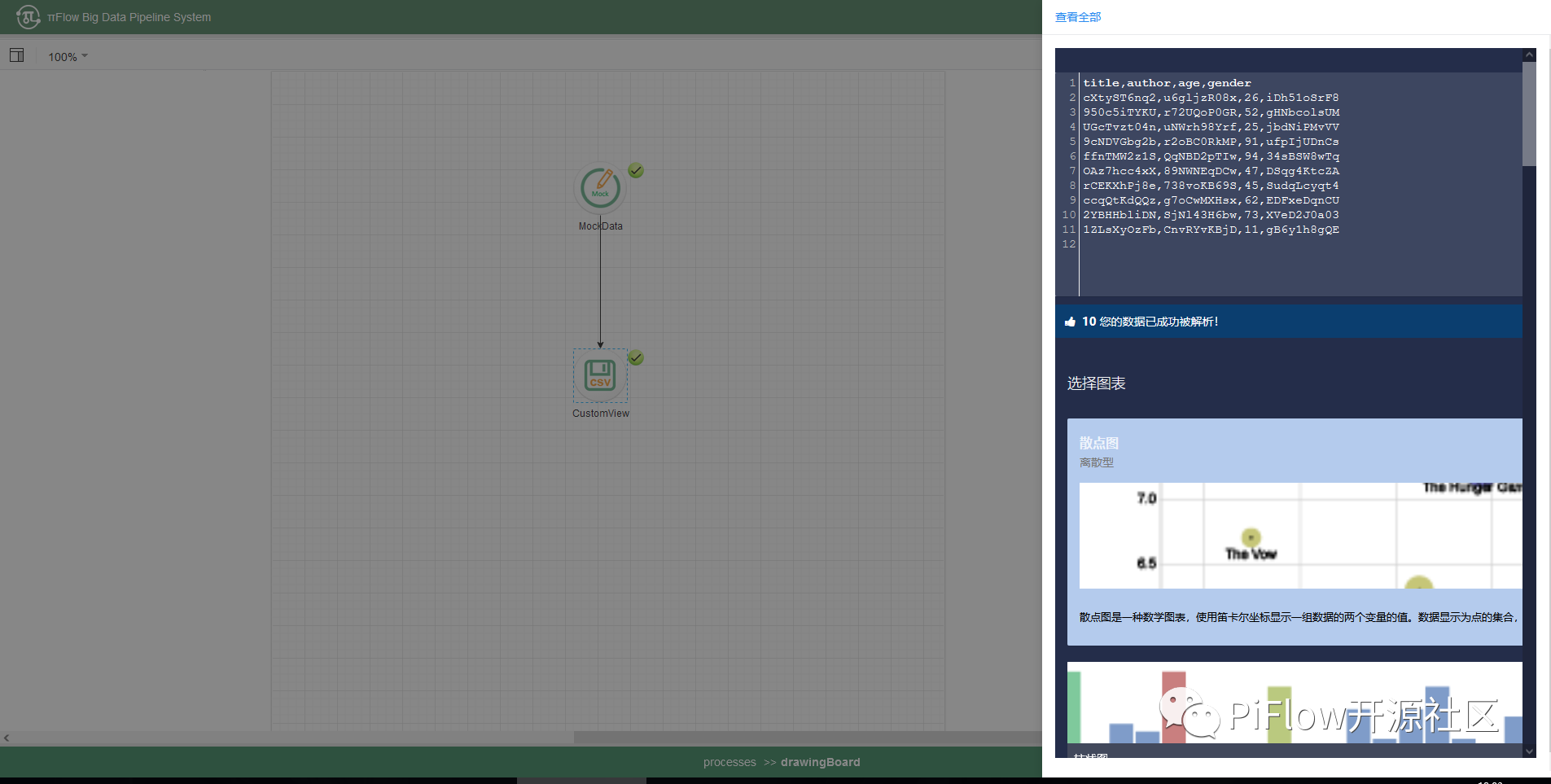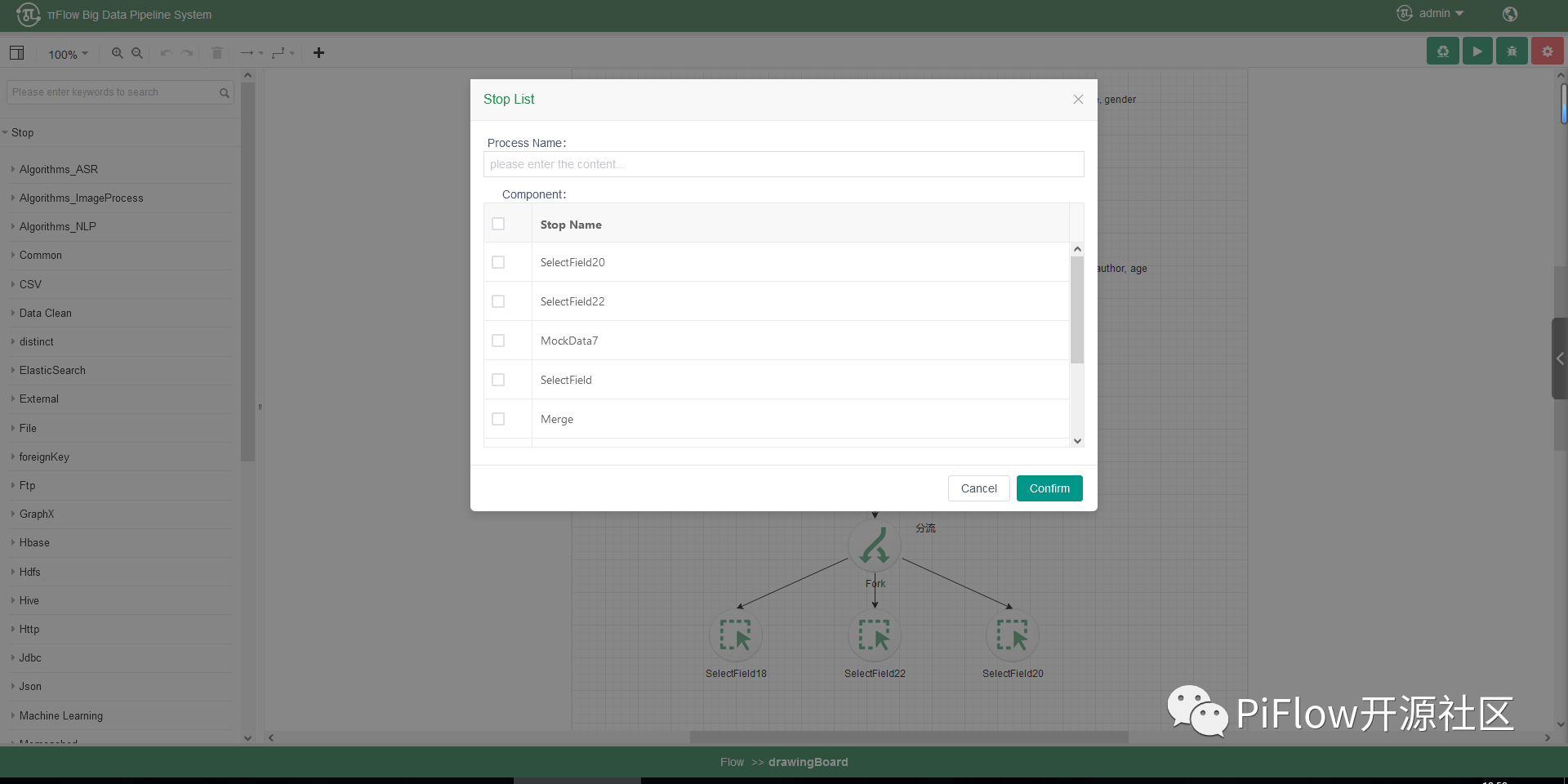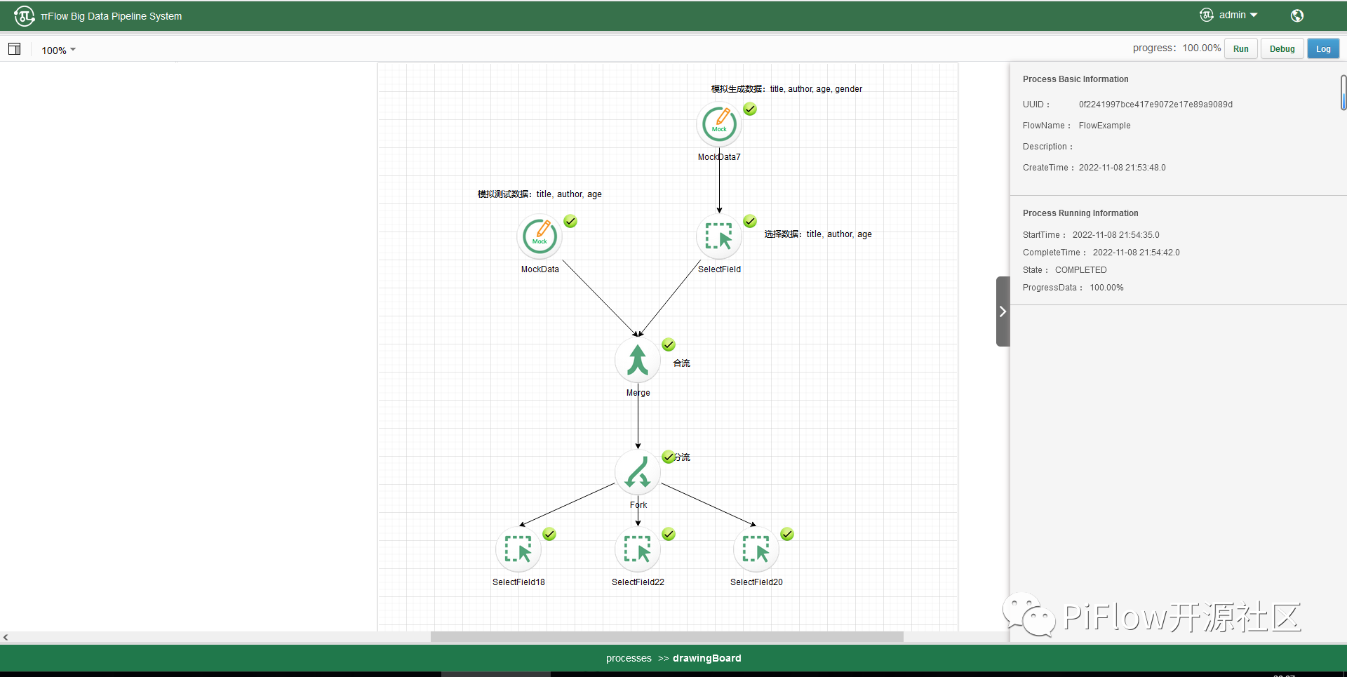 πFlow是一个基于分布式计算框架技术开发的大数据流水线处理与调度系统。该系统将大数据采集、清洗、存储与分析进行抽象和组件化开发,以所见即所得、拖拽配置的方式实现大数据处理流程化配置、运行与智能监控。吸引了大批中小企业、院所高校用户,支撑了科技、工业、跨境电商、数据资产管理、医疗健康等领域大量软件工程案例。