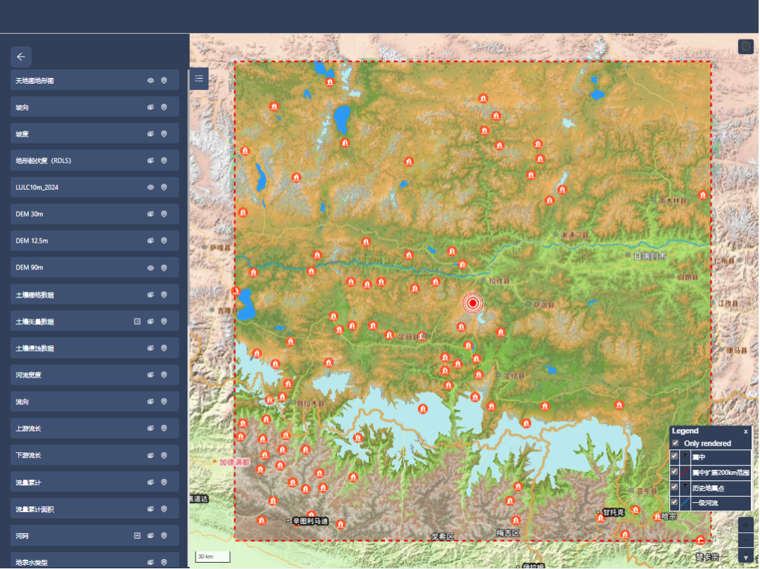 国家冰川冻土沙漠科学数据中心(以下简称数据中心)根据灾情,收集、制备基础地理数据、卫星遥感数据、人口数据、地形等应急响应科学数据。截止目前已开放提供29个服务数据集,服务数据量约64GB。已发布“西藏日喀则市拉孜县5.5级地震(20250512)科学数据应急响应服务”系统,系统提供数据的可视化展示、互操作以及数据下载功能。供相关应急、救援和研究部门使用。