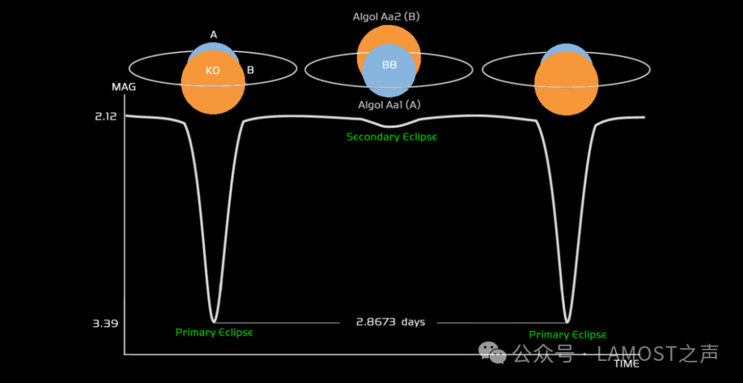 图1:Algol型食双星相互绕转时彼此掩食造成亮度发生周期性变化。图片来自Astropical Space。
