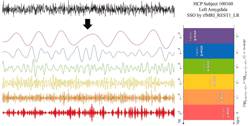 图3 基于自然对数线性定律BOLD波动可分解为六个频段