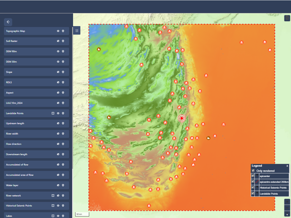 国家冰川冻土沙漠科学数据中心(以下简称数据中心)根据灾情,收集、制备基础地理数据、卫星遥感数据、人口数据、地形等应急响应科学数据。截至目前已开放提供26个服务数据集,服务数据量约60GB。已发布“巴基斯坦5.6级地震(20250629)科学数据应急响应服务”系统,系统提供数据的可视化展示、互操作以及数据下载功能。供相关应急、救援和研究部门使用。
