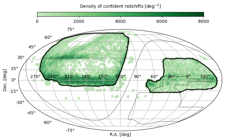 DESI目标天体的选择基于DESI Legacy Imaging Surveys DR9中14,000平方度的光学和中红外测光数据。根据红移将目标天体分为五大类: