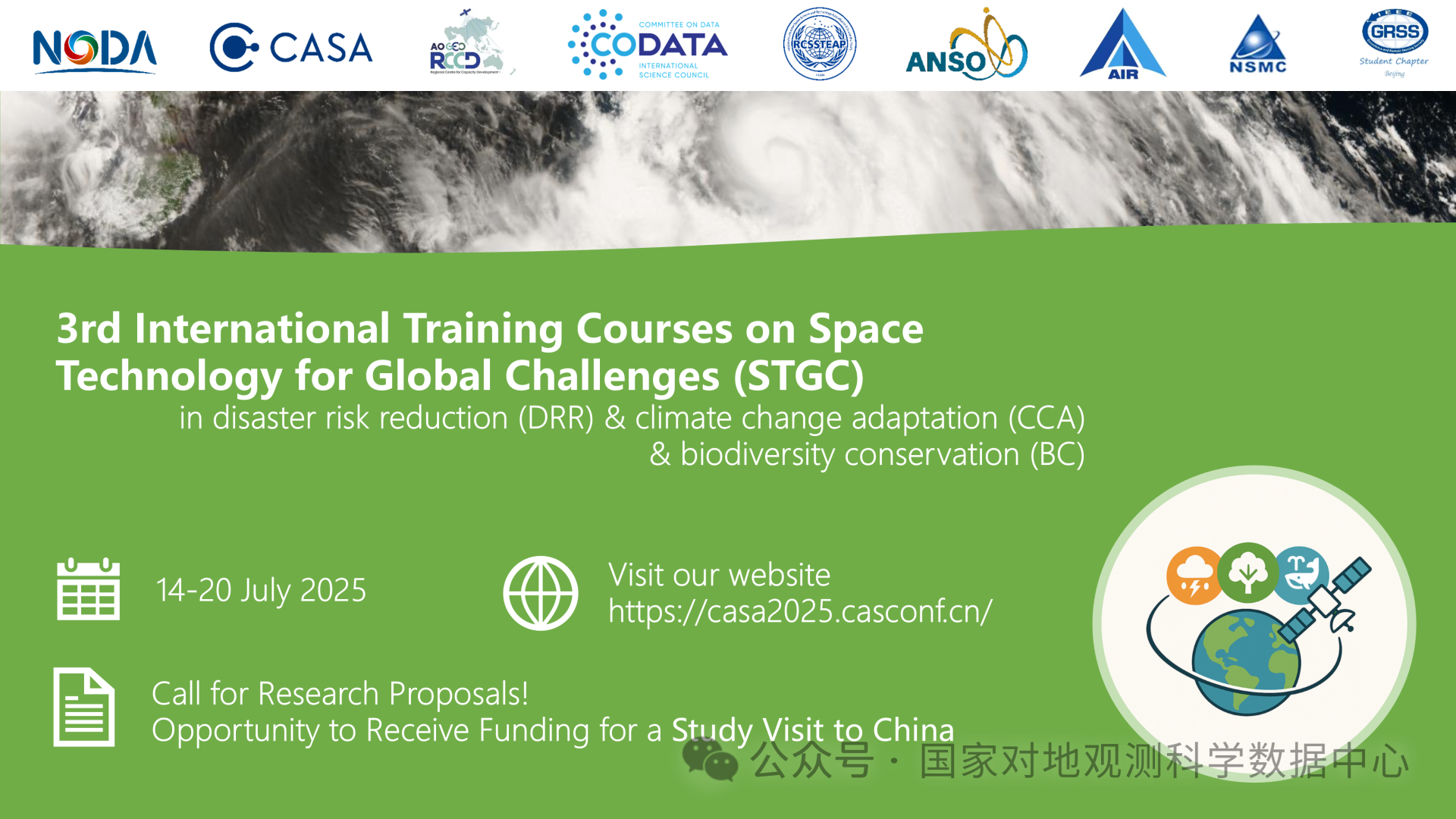 培训班得到了国际科学理事会数据委员会(CODATA)、国际碳卫星观测数据再分析合作计划(CASA)、科技部中国GEO全球重大灾害应急响应机制(CDDR)、亚洲大洋洲区域综合地球观测计划(AOGEO)、国家卫星气象中心(NSMC) 、“一带一路”国际科学组织联盟(ANSO)、联合国附属空间科技教育亚太区域中心(RCSSTEAP)和IEEE GRSS 北京学生分会等共同支持。