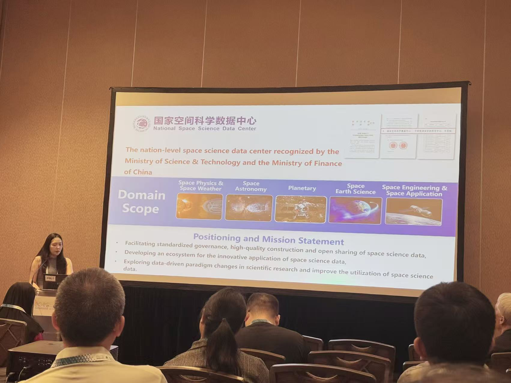 在PS08 "大数据时代的行星数据——档案、工具与国际合作"分会上,数据中心代表作题为《国家空间科学数据中心的数据管理与应用实践》(Data Management and Application Practices of Chinese National Space Science Data Center)的报告。阐述了数据中心的职能与使命,详细介绍了科学数据治理流程、数据资源体系与多源项目数据服务平台的建设成果。报告重点展示了在人工智能驱动科学研究的新时代背景下,数据中心的前沿探索与实践创新:一方面进行了智能技术开发,研发了智能分析工具与智能就绪数据产品,另一方面在数据智能检索系统建设上取得重要突破,实现了自然语言检索、数据样例检索、事件标签检索及混合模式检索等创新功能。报告引起了与会专家的广泛兴趣,现场就科学数据国际共享与合作的前景进行了深入交流,并探讨了未来国际合作的具体方向与可能性。
