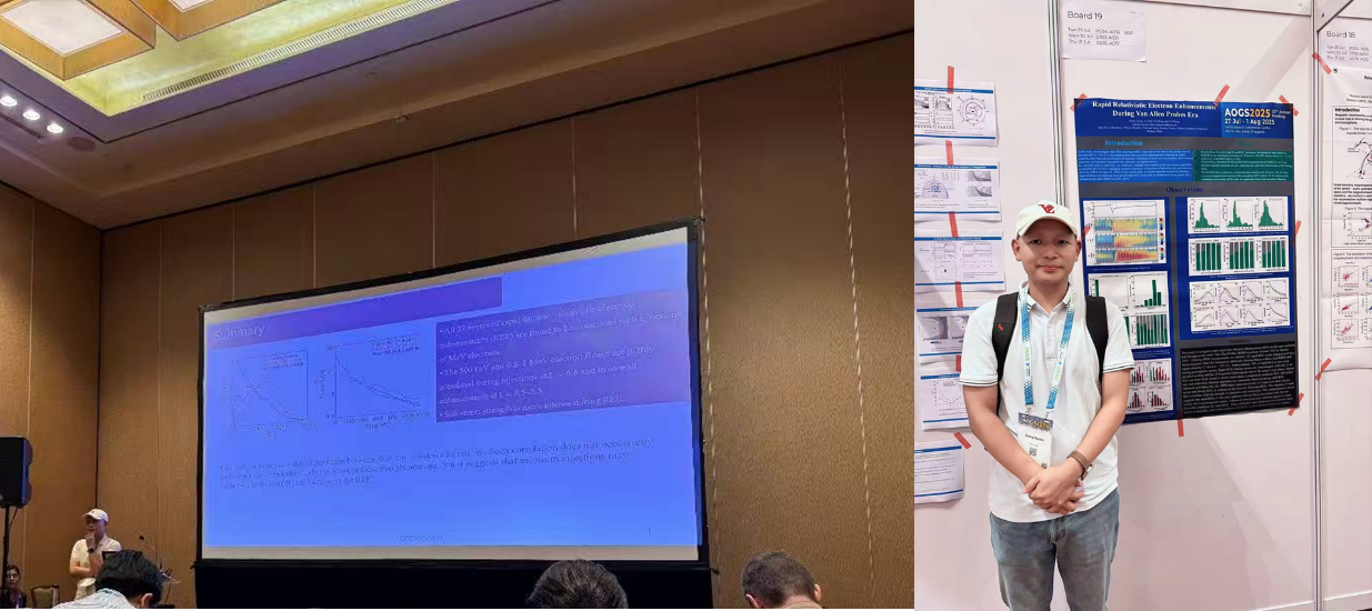在ST03“多尺度太阳风-磁层相互作用”分会,数据中心代表作题为《Rapid Relativistic Electron Enhancements and Associated Particle Injections: a Multi spacecraft Statistical Study》(快速相对论电子增强及其关联的粒子注入:多卫星统计研究)的报告,并在海报展区进行了题为《Rapid Relativistic Electron Enhancements During Van Allen Probes Era》(范阿伦卫星探测时代的快速相对论电子增强)的海报展示交流。两个报告系统介绍了地球磁层辐射带相对论电子在数小时尺度下的显著增强事件与磁暴、亚暴和亚暴粒子注入之间的关联关系,该研究结果对理解地球磁层辐射带相对论高能电子短时动态变化现象、机制有重要启示。