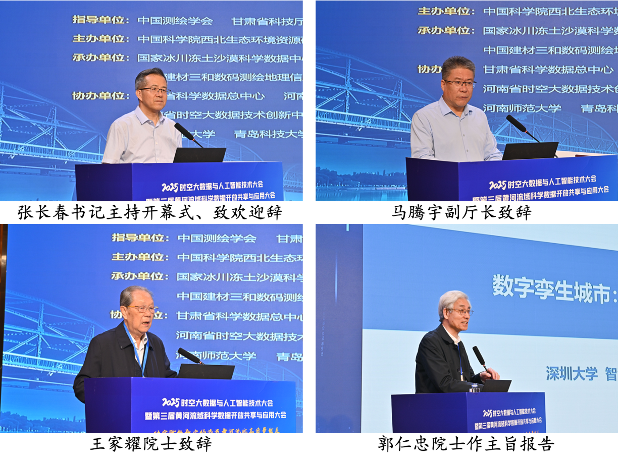 9月6日上午,会议由中国科学院西北生态环境资源研究院张长春党委书记主持并致欢迎辞。甘肃省科技厅马腾宇副厅长、中国测绘学会武文忠副理事长、河南大学王家耀院士致辞,深圳大学郭仁忠院士作了“数字孪生城市”的主旨报告。马腾宇厅长指出大会聚焦“时空大数据”与“人工智能”的深度融合,加速科学数据的开放共享与高价值利用,对于精准把脉流域问题、科学规划发展路径、培育新质生产力、实现发展方式绿色转型具有不可替代的战略价值。王家耀院士指出,在时空大数据与人工智能支持下,黄河流域科学研究、产业创新将会进一步融合与发展,甘肃省已建立了全国第一个成体系的省级科学数据中心,并且已经聚合省级科学数据开展赋能黄河流域,是甘肃的科技创新体系建设的举措,也是黄河流域科学数据联盟的成果。