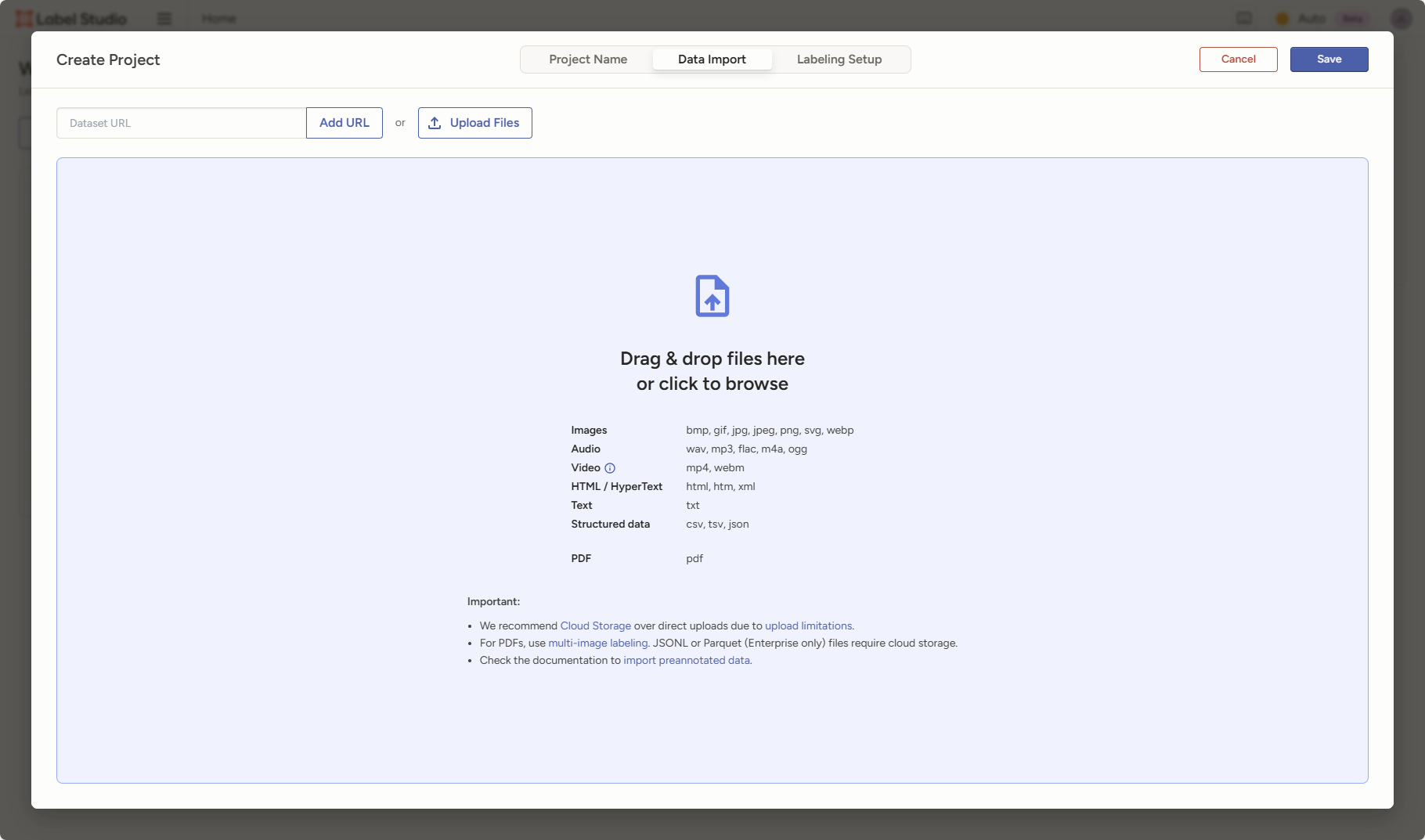 7.输入项目信息,上传工具所支持的文件,选择进行标注的AI处理方式,完成项目创建。