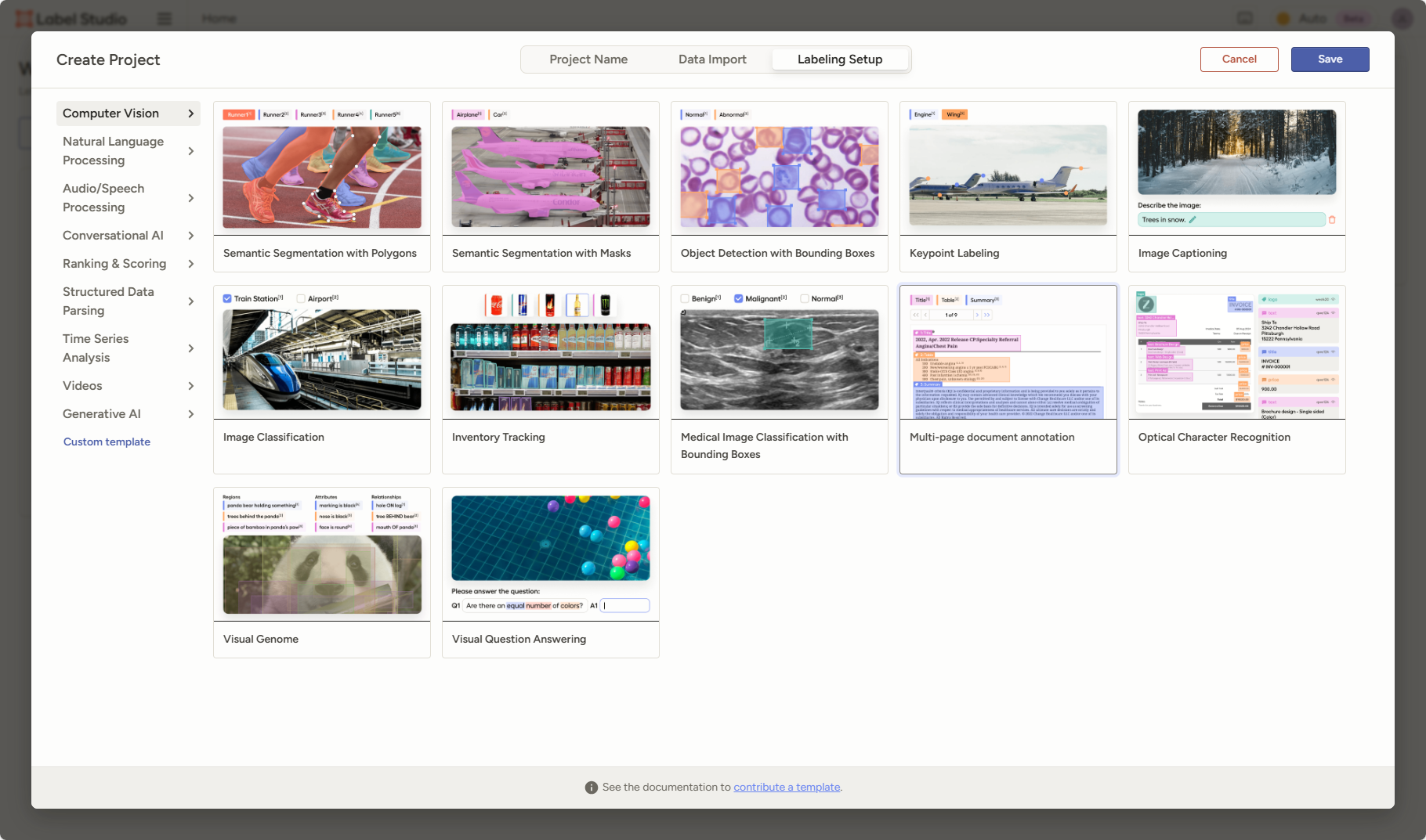 Label Studio 是一款由Human Signal研发的开源多模态数据标注工具,支持对文本、图像、音频、视频、时间序列等多种数据类型进行专业标注。通过直观的可视化界面,用户可灵活配置标注模板,覆盖目标检测、OCR、情感分析、命名实体识别等常见任务,并能将标注结果一键导出为 YOLO、COCO、PASCAL VOC 等主流 AI 模型兼容的格式。