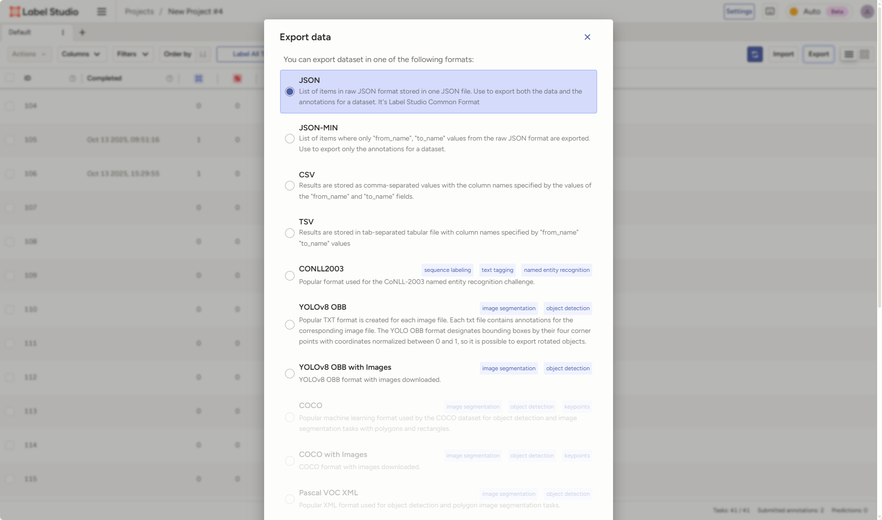 10.可将完成的任务导出为多种格式,供给AI模型进行训练。