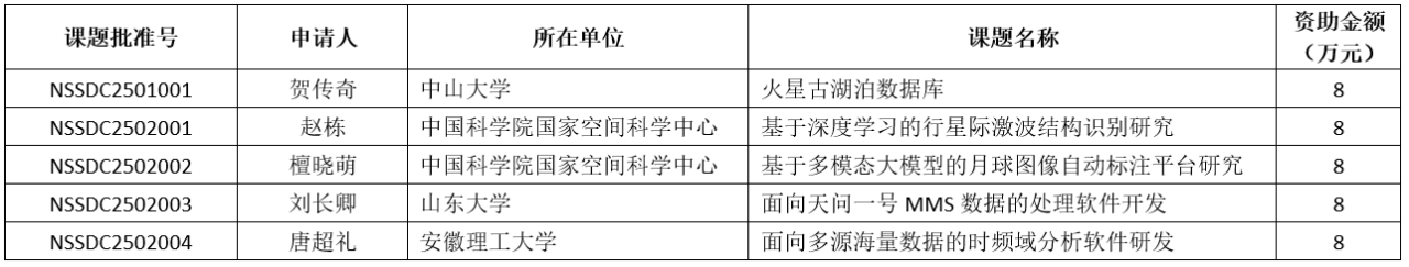 国家空间科学数据中心2025年度青年开放课题经过专家评审,拟对以下5项课题立项资助,予以公示,公示期为2025年11月19日-11月23日。