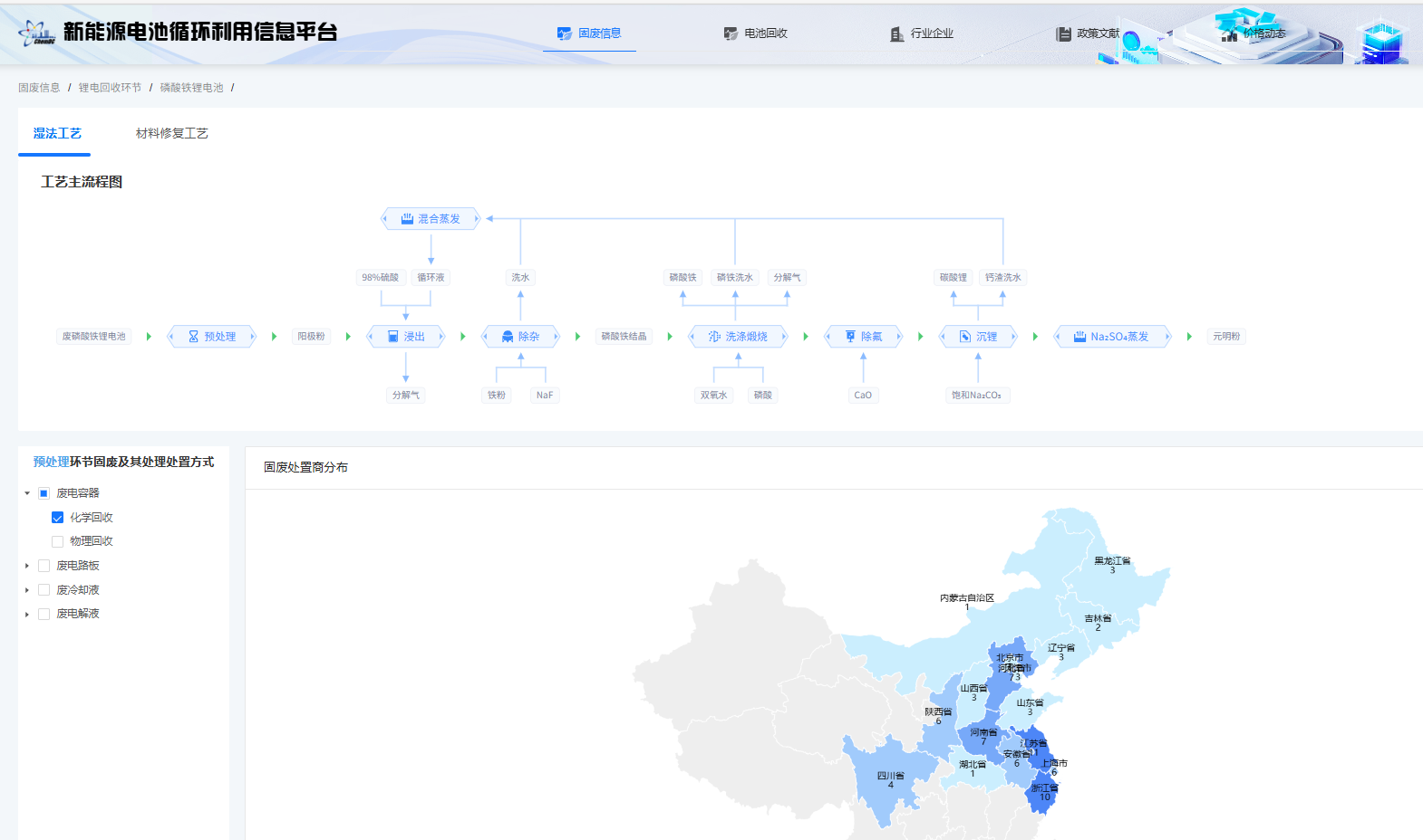 提供可选处理工艺、适用法规标准及处置商信息,支持按固废类别、处理方式、区域快速匹配最优方案,提升资源化处理效率与经济性。