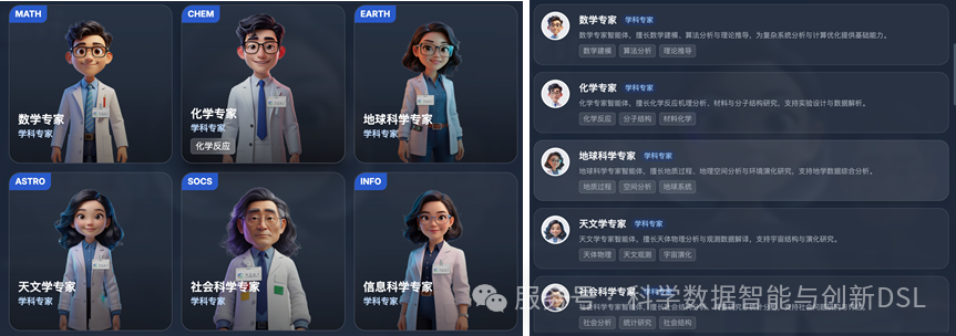 专属形象与个性化设定:每位学科专家不仅拥有深厚的专业背景,还配备了专属个性化头像,让AI代码变成了具有独特学术性格的科研伙伴。